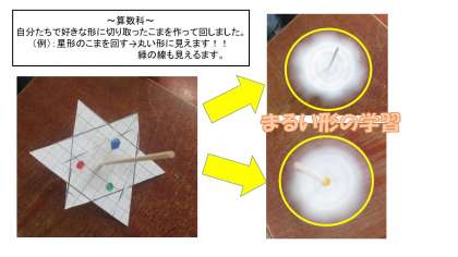 星形,ハート形,ギザギザなど他にもいろいろな形のこまを回しました。すると・・・