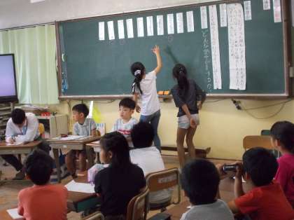 【写真左】光の子学級 1か月間一緒に過ごしてきた友だちの他己紹介をしました。友だちの好きなもの,得意なものなどを考えて発表しました。