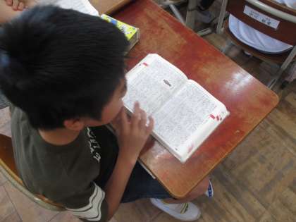国語の学習で国語辞典の使い方を学習しました。見出しは50音順に並べられていることや濁点,半濁点の順番を確認しました。
