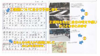 これからはそれぞれの場所について資料から考えていきます。写真には自分の考えがしっかりとわかるノートを載せています。