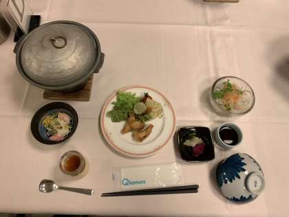 お風呂に入ってさっぱりした後は,おいしい夕食です。