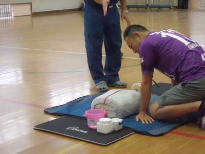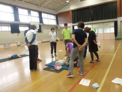 10日(月)は,教職員対象の救急救命研修会を行いました。心肺蘇生法の仕方を学び,人形を使って実践しました。いざという時のためにしっかりと研修を受けました。