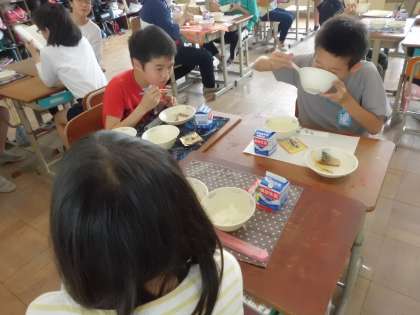 楽しそうに食べていた6年生。食べっぷりは見ていて気持ちがいいです。これからもたくさん食べてくださいね。