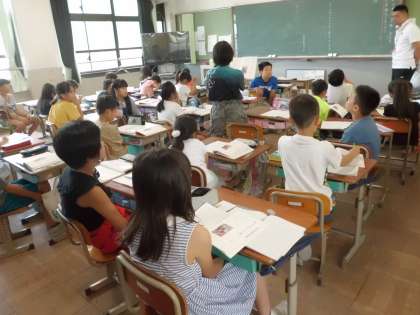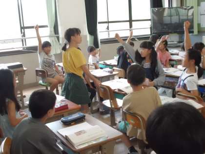 自分の考えが伝わるように,一生懸命発表している4年生。