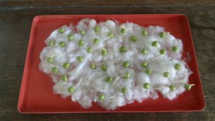 その実えんどうを見ると,何と発芽しているものがたくさんあるのです。