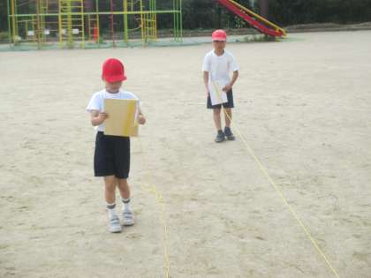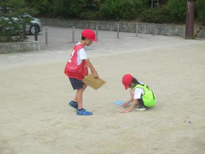 体育はエンドボールの学習に入りました。今年からはコートも自分たちで作ります。