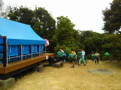 快適な一夜を過ごせるように,みんながんばって寝具の準備をしました。