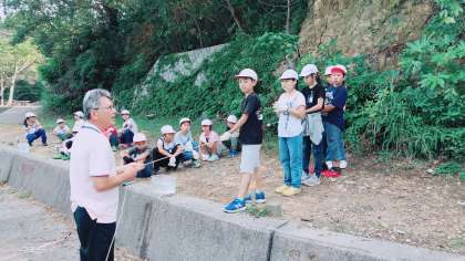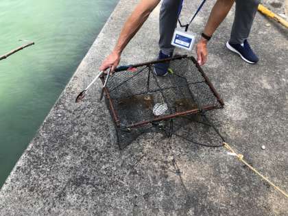 沈めておいた仕掛けのかごをみんなで引き揚げます。