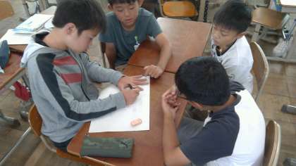 レク係が休み時間に集まって会議をしていました。