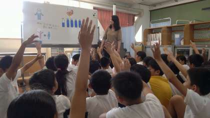 最初に養護教諭から1日に出る汗の話をしていただきました。
