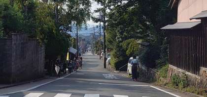 鷹峯小のほとんどの子どもたちは,毎朝,坂の上にある学校を目指して登校してきます。