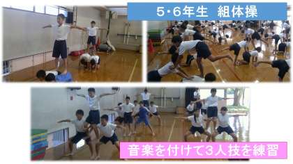 6年生がよい手本となり,5年生も組体操頑張っています!