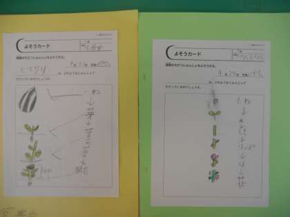 理科の学習では,春から育ててきた植物の観察が終了しました。最後に今までの観察カードをまとめました。