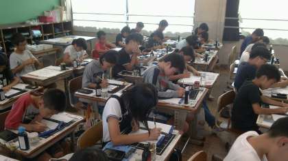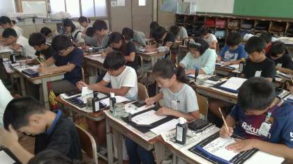 そして、その俳句を書写の時間に小筆を使って丁寧に書きました。