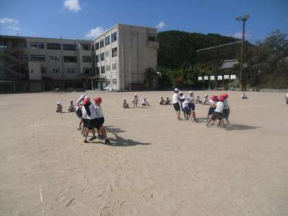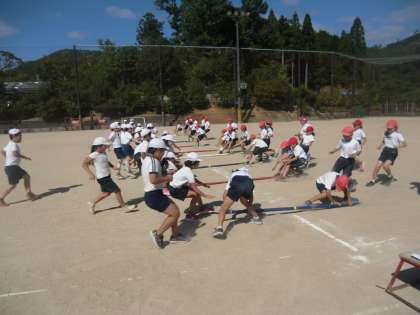 3年生と4年生の運動会の練習が始まっています。今年度は棒引きをします。一生懸命声をかけあい,必死で棒に向かって走り,全力で引っ張ります。