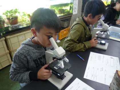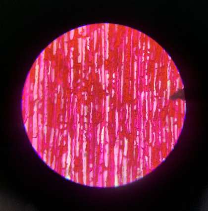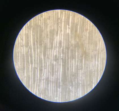 経木(薄い木の板)を顕微鏡で覗いてみました。木の木目がよくわかりました。