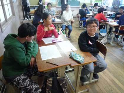 子どもたちの授業の様子です。他校のお友だちと交流しながら学習していました。