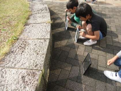 理科の学習で光についての学習に入りました。この日は光はどのように進むのかを調べました。鏡を使って,調べるとすぐにわかる人が多かったです。
