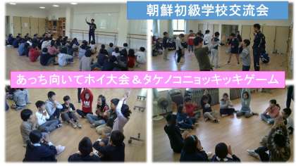 朝鮮語の授業では,初級学校の5年生が先生となり朝鮮語で自己紹介ができるようにレクチャーをしてくれました。