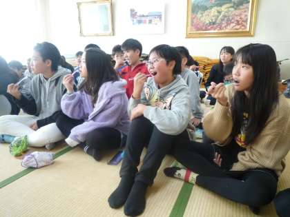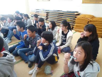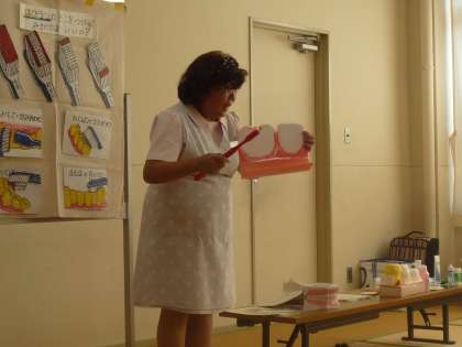 歯科衛生士の先生に来ていただいて,歯磨き指導をしていただきました。