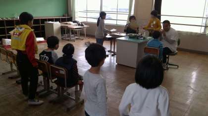 5年生は来年度の最高学年として新1年生と検診場所を回ったり,検診場所でお手伝いをしたりしました。