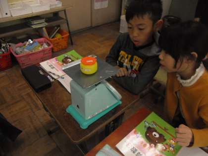 算数で「重さ」の学習に入りました。実際に教科書についている天秤を使って重さを比べたり,量ったりしました。