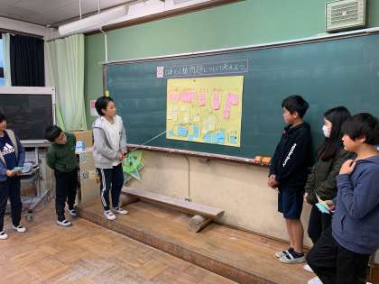 社会科の授業のまとめ学習でグループに分かれて日本の人権について話し合いました。これまで学んできた内容や新たに調べたことを使って,自分たちが話し合いたいことを付箋に書いて,グループで交流しました。グループの友だちと熱く意見を伝えあっている姿はさすが6年生だと感じました。これからの日本をよりよくするためにも一人一人が人権について考えることも大切なことですね。