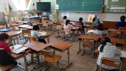 臨時休業中も自習に来ている子どもたちは,一生懸命に学習に励んでいました。