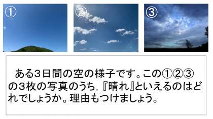 次の3つのうち晴れはどれでしょう。(いくつ選んでもかまいません。)