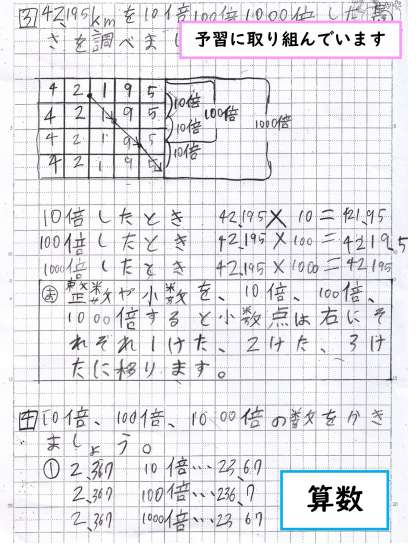 1.算数の予習に取り組んでいました。自分で学習してみて,学校で理解を深める流れになっていると思います。授業ではたくさん手を挙げて活躍していました。