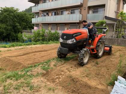 カチカチだった畑が今では柔らかい土の畑に変わりました。耕していただいた畑を使って,子どもたちと一緒に作物を育てます。どんな作物ができるのか,楽しみです。