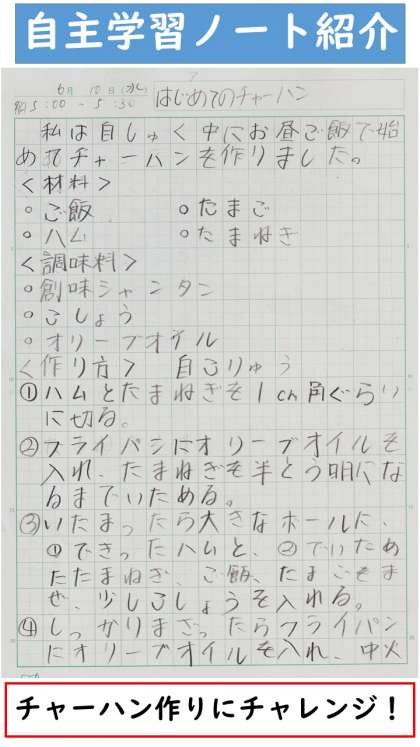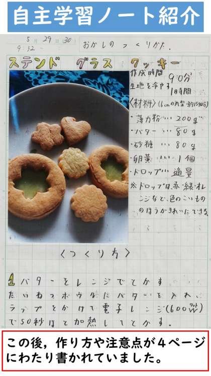 調理実践を自主学習ノートにしたものの紹介です。