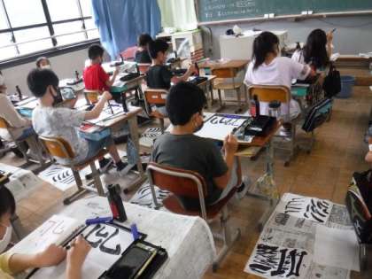 子どもたちは筆の穂先の動きや筆圧に気を付けながら書くことができていました。