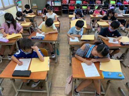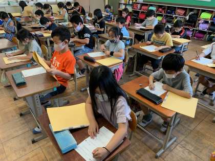 昼休みが終わった後にぐんぐんタイムを行っています。「ぐんぐんタイム」では,10分間算数の学習プリントに取り組みます。計算問題をたくさん解いて,計算力を磨いています。学習したプリントは「ぐんぐんファイル」に綴じていきます。たくさん学習して力をつけていってほしいです。