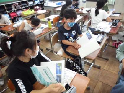 理科で学習している「天気の変化」の学習が終わりました。今日はまとめとして,雲画像とアメダスの2枚の資料から天気を読み取り,どのように変化していくのかを学習したことを生かしてまとめました。