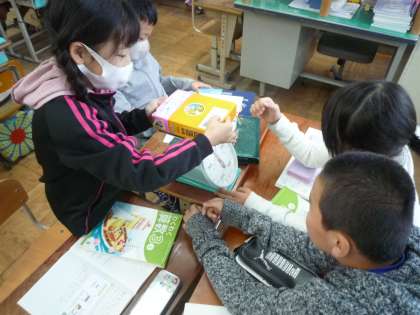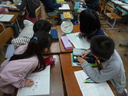 算数の学習ではかりを使って物の重さを調べました。教科書や筆箱などいろいろな物を計りました。ランドセルに入れている物の重さも調べてみると1350gでした。重い荷物を持って,坂を上がり学校に来ていることを改めて感じました。子どもたちよく頑張ってます!