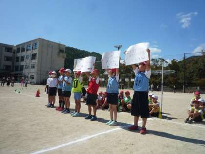 お暑い中,たくさんのご来校ありがとうございました。子どもたちの一生懸命頑張る姿を見ていただけたと思います。全力で競技に取り組む子どもたちはとても素敵でした。また,競技だけではなく,司会やめあて,ふりかえりもしっかりと自分たちの言葉で伝えることができていました。明日お渡しする学級通信にもいろいろと書いておりますので,是非ご覧になってください。頑張った子どもたちに温かい声かけをよろしくお願い致します。