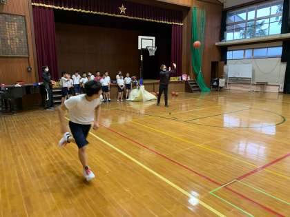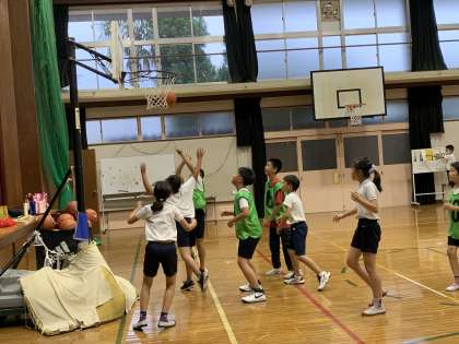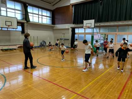 辻󠄀井コーチに基礎・基本的な動きからご指導いただいています。後半にはミニゲームを行い,子どもたちが真剣にプレーをしています。いろんな技を習得し,ゲームで実践してほしいですね。