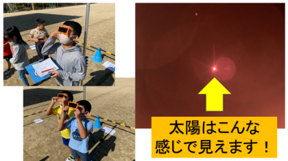 理科の学習で太陽の位置を時刻と比べながら調べました。太陽の位置を調べるために遮光版を使って調べました。友だちと話し合いながら,楽しく学習していました。