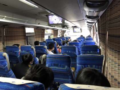 バスの車内は,のんびりした雰囲気です。
