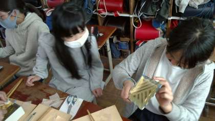 子ども達は金の輝きや繊細さに緊張しながら一生懸命取り組みました。その後総合的な学習の時間の学習と合わせて,仕事に関するインタビューもしました。