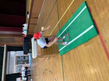 高さに挑戦する時には着地まで意識して跳んでいます。頑張れそうな技に挑戦するときはカードでポイントを見て,お互いを見てアドバイスしながらできるようにしています。いい姿の友だちが増えてきています。そんな様子が広まればいいなと感じます。