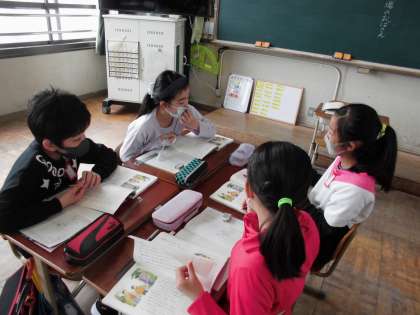 登場人物の行動と自分たちの普段の生活の様子を重ねて考えることで,登場人物が相手に対してどんな思いを持っているのかということをしっかりと考え,グループで意見を出し合うことができました。