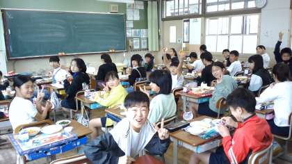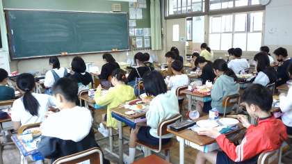 今日から給食が始まりました。みんな楽しみにしていた様子です。初日からおかわりにくる人も多く,もちろん完食です。