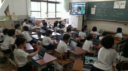 GIGA端末のTeamsを使ってテレビ会議体験をしました。
