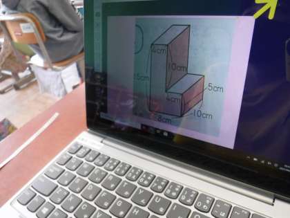 立体の面積の求め方をロイロノートを使い,みんなで交流しました。