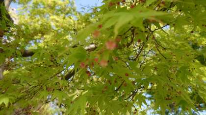 秋にはプロペラのような実がなり,風に乗って遠くまで運ばれます。