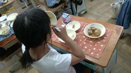 まだまだ箸の使い方を練習中の低学年では,骨を取るのに悪戦苦闘しながらですが,みんながんばって食べていました。