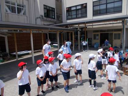 1年生は,「電子レンジおに」というオリジナルのおにごっこをして楽しんでいました。
