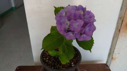 たびたびホームページで紹介している差し木のアジサイですが,きれいな紫色の花を咲かせています。